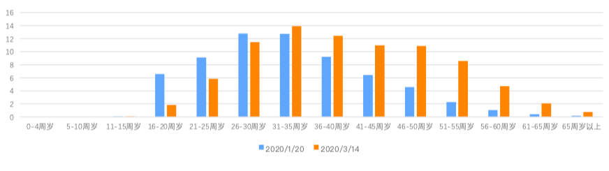 疫情初期与疫情后期各年龄段投保人数对比