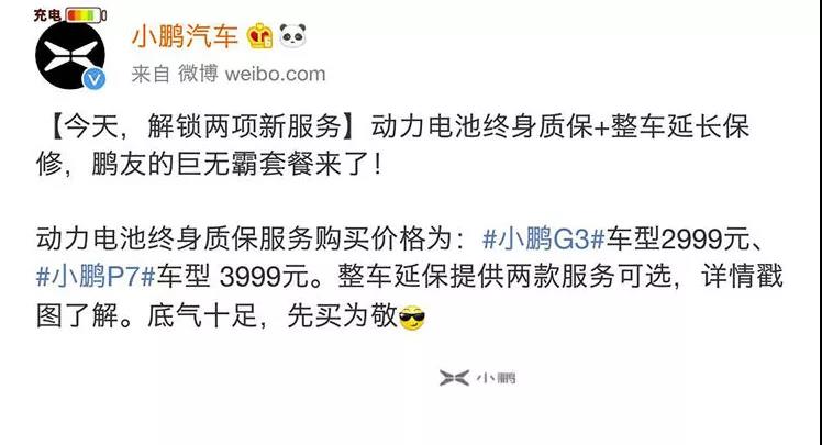 在保险公司介入未深的环境下,有部分新能源车企已经自己开始做延保服务,如今年6月小鹏汽车推出动力电池终身质保、整车延长保修两项新服务。服务涵盖小鹏 G3 与小鹏 P7 两款车型。