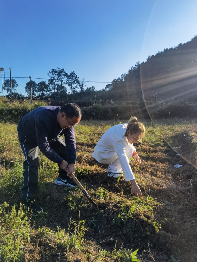 中国人寿重庆市分公司派驻秀山县古田村乡村振兴工作队员谢秀容考察羊肚菌种植基地