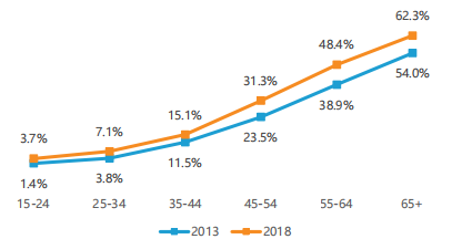 我国65岁以上居民慢病患病率,数据来源:国家卫健委