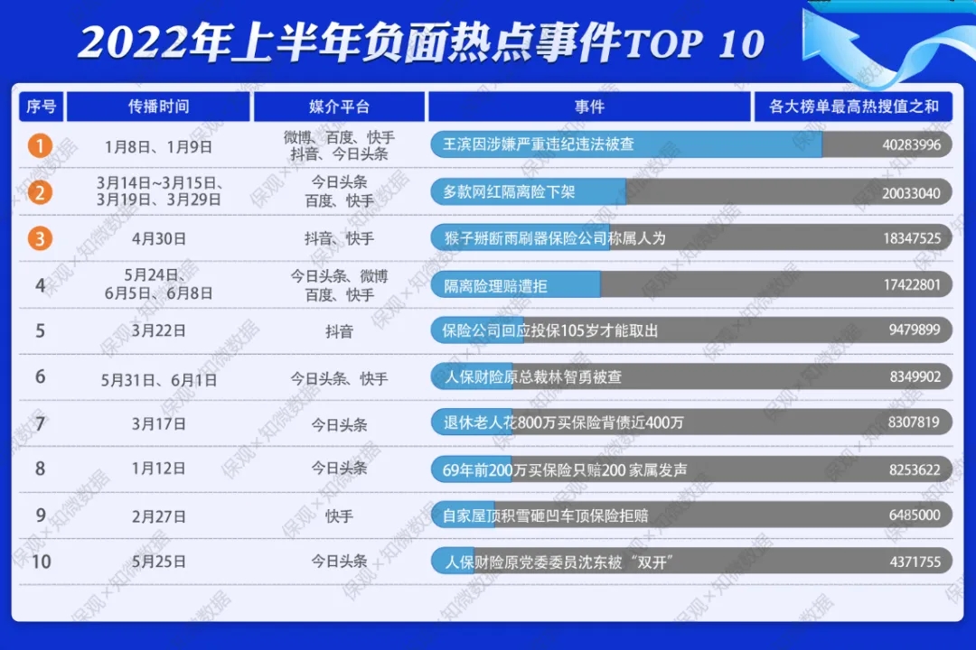 回顾上半年,负重前行的保险行业有很多事件发生,关乎新产品、新政策、新人事变动等等。近期,保观联合知微数据对上半年保险行业的大事件进行了梳理,推出了2022年上半年保险行业热门事件排行榜。