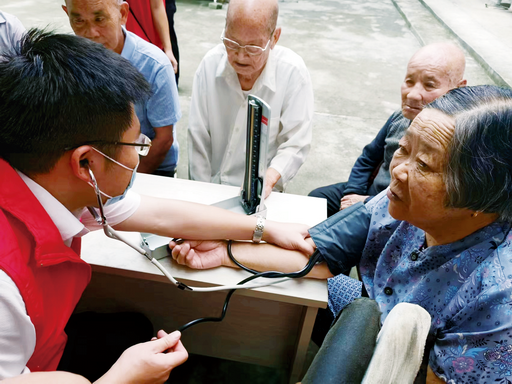 图:为大麦屿街道敬老院老人提供健康义诊服务