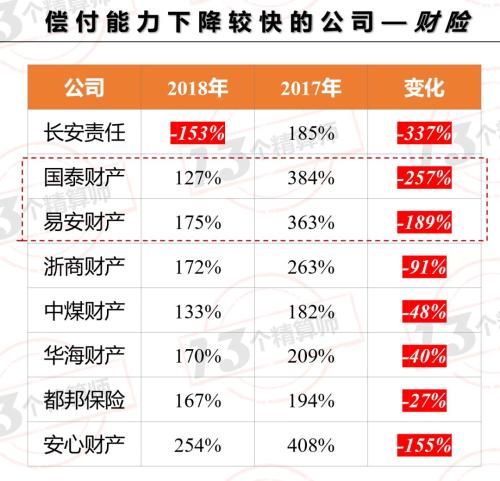 2018年险企偿付能力排行榜:4家寿险公司 1家财险公司不达标