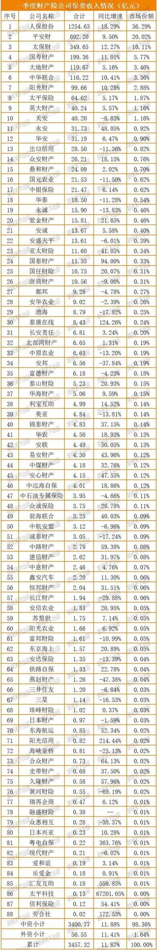 就各财产险公司在一季度的表现来看,根据行业交流数据,一季度产险公司整体仍然有两位数的增速,其中,有66家中资险企和22家外资险企保费增速均高于11%。
