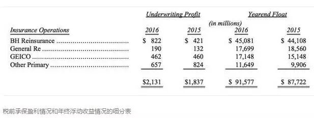 事后证明,这绝对是一个英明的决定:最初,我们预期这家公司将会在成立伊始的数年中出现重大亏损,因为在全球业务实施过程中,皮特·伊斯特伍德首先需要建立与业务相关的人员和基础设施等基本条件。相反的是,在公司成立之初的创业期间,皮特·伊斯特伍德和他的团队就已经为公司贡献了显著的承保利润。2016年时,伯克希尔·哈撒韦公司的业务规模已增加40%,至13亿美元。显而易见,这家公司注定将会成为全球一流财险公司(P/C insurers)中的佼佼者。