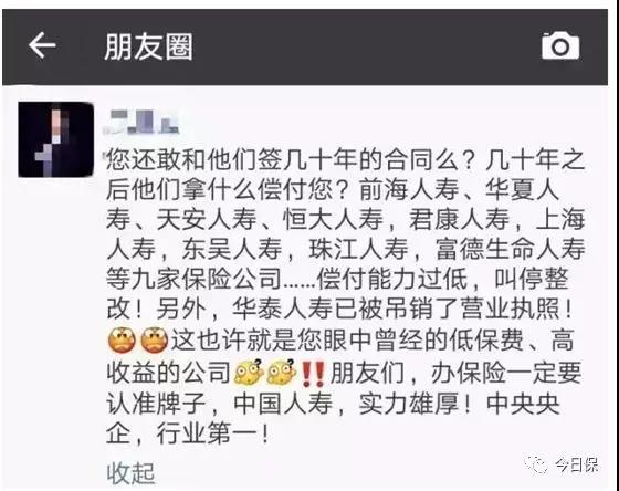 《今日保险》甚至在朋友圈中看到过,用国家领导人名义卖保险的营销行为。