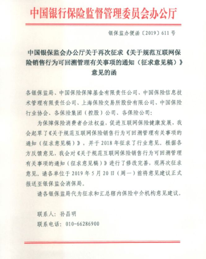 银保监会拟强化互联网保险可回溯管理,线上线下融合销售也须全记录