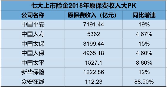 七大上市险企2018保费收入大PK!谁最能“吸金”?谁又增速垫底?