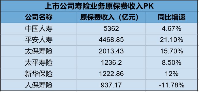 有业内人士认为,得益于行业回归保障的大背景,一些早年间布局长期业务的险企已经进入收获期,依靠续期业务不断拉动公司原保费收入的持续较高增长,比如平安人寿和太保寿险。而另外一些寿险公司则刚开始转型,正是阵痛期,原保费收入微增甚至下滑,比如中国人寿、太平寿险和人保寿险。