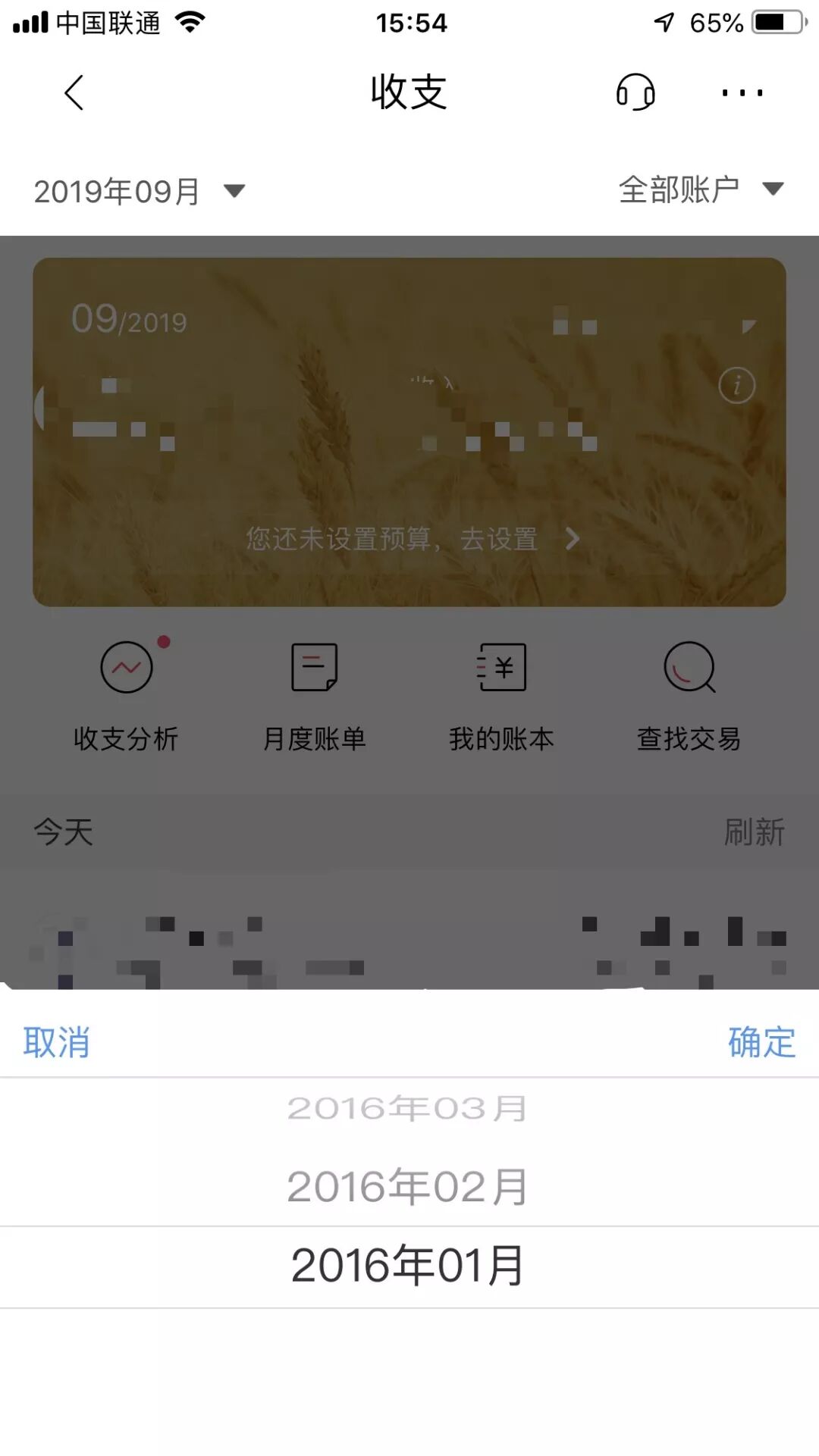招行手机app收支记录界面时间选择最早只能选到2016年1月