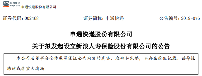 不过该公司至今仍未获批筹建,若上述两家险企获批,申通快递将一口气囊括财险寿险双牌照。