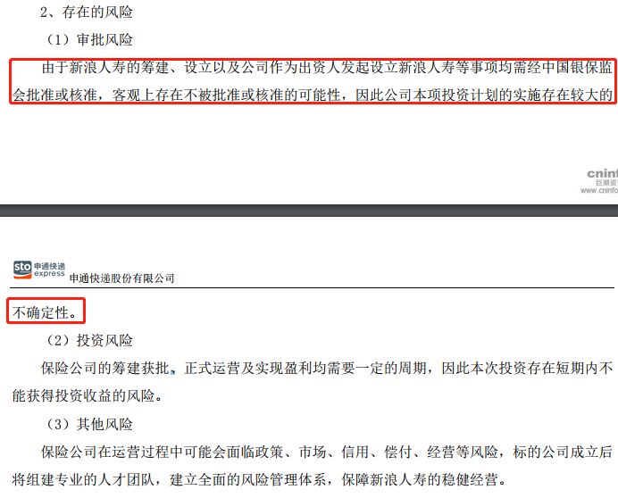 据统计,自银保监会合并以来,仅有国宝人寿和恒安标准养老以及海保人寿3张牌照获批。所以不难理解,在申通发布的公告中,发起设立新浪人寿可能存在的三项风险之中首先就是“审批风险”——