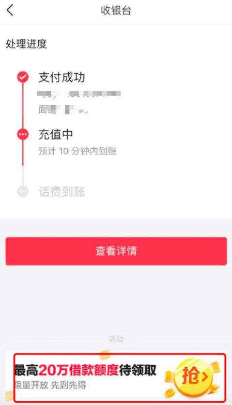 目前,“放心借”已经不再在今日头条“我的钱包”中直接展示,但是并未下架,而是将入口“隐藏”得深了些。记者在今日头条中尝试操作“手机充值”后,“最高20万借款额度待领取”的信息随后在页面底部展示了出来。