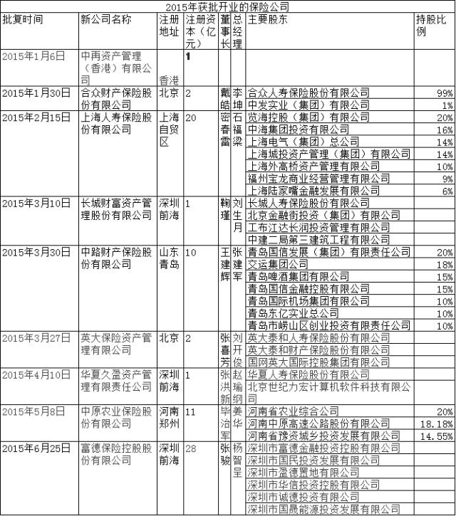 2015年至今,超过150家的公司宣布参与设立32家保险公司,这其中人身险公司有17家,财产险公司只有11家。由于监管政策的开闸,再保险公司数量出现了猛增,除太平再保险将在国内的分公司改建为独立法人的再保险公司外,人保集团设立的人保再保险也已经获得批筹,民营资本对于再保险也产生了更多的兴趣,目前已知的包括前海再保险、亚太再保险、华宇再保险三家等待批筹。