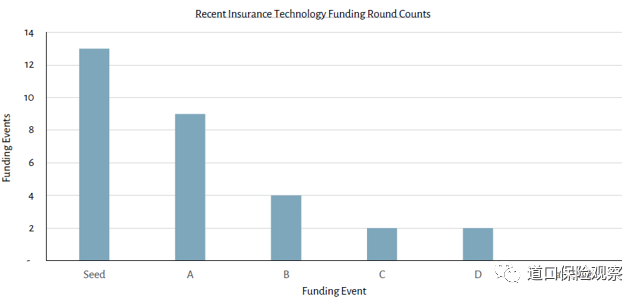 2018年一季度的保险科技融资活动以早期项目融资为主,共30个融资事件中有73%为种子/A轮。