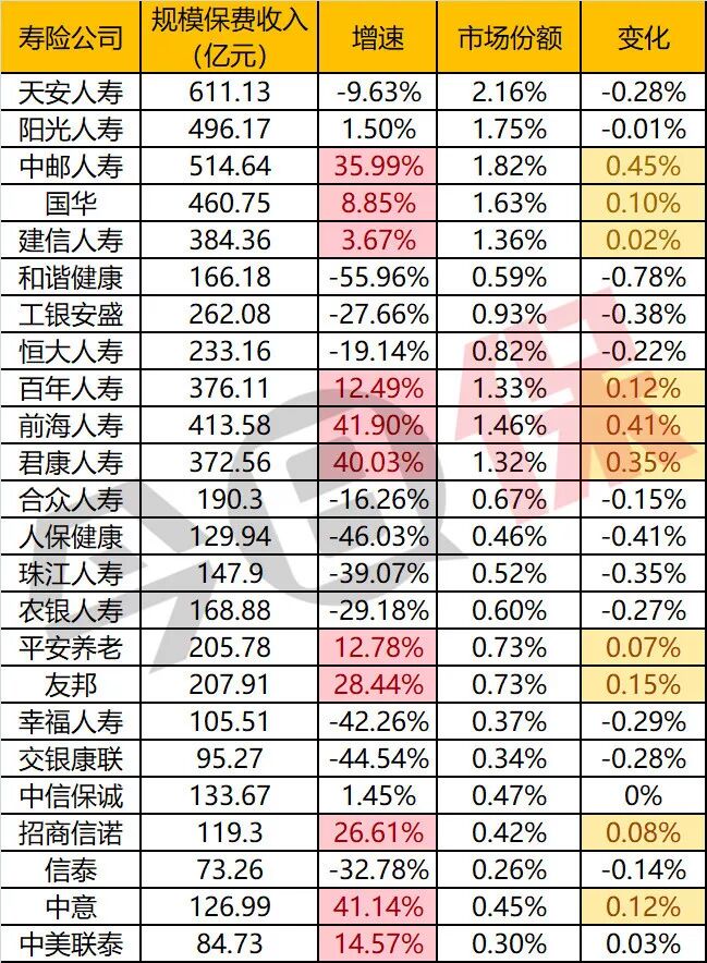 九月保费图谱:从七大梯队,看行业如何告别负增长