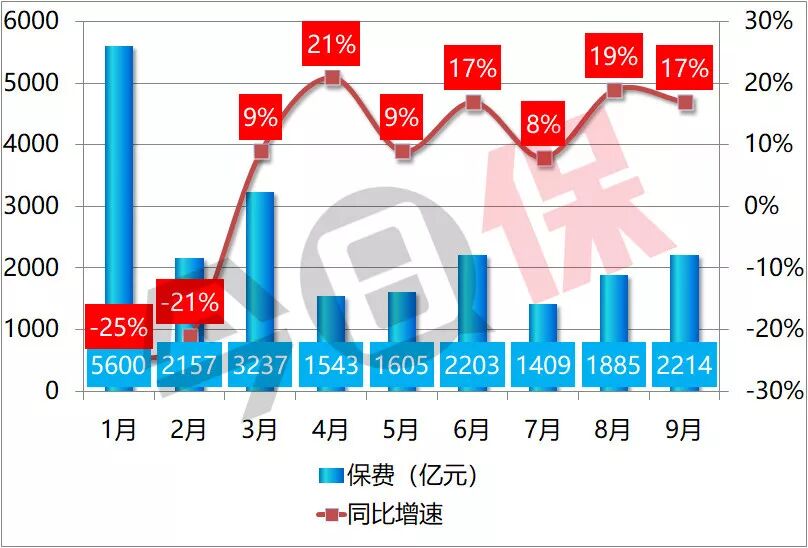 寿险方面,9月单月原保费实现2214亿元,同比增长17%。相比上半年的数据,进入下半年的寿险业保费增速回暖明显。连续两位数的增幅,9月份寿险行业规模保费实现了2.3%的正增长。